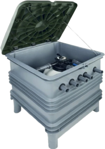 Os componentes de filtração e tratamento de água irão estar perfeitamente acomodados e protegidos dentro do local técnico pré-montado.